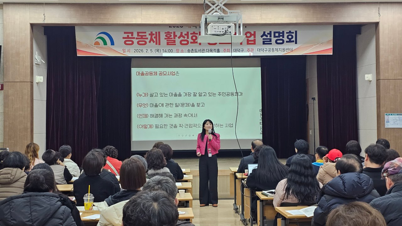 #대덕구공동체지원센터 #대덕구청 #2026년 #대덕구 #좋은마을만들기 #공동체 #활성화 #공모사업 #사업설명회 #모이자 #해보자 #가꾸자 #기획 #오정동 #대화동 #중리동 #비래동 #송촌동 #법1동 #법2동 #회덕동 #덕암동 #목상동 #상서동 #신탄진동