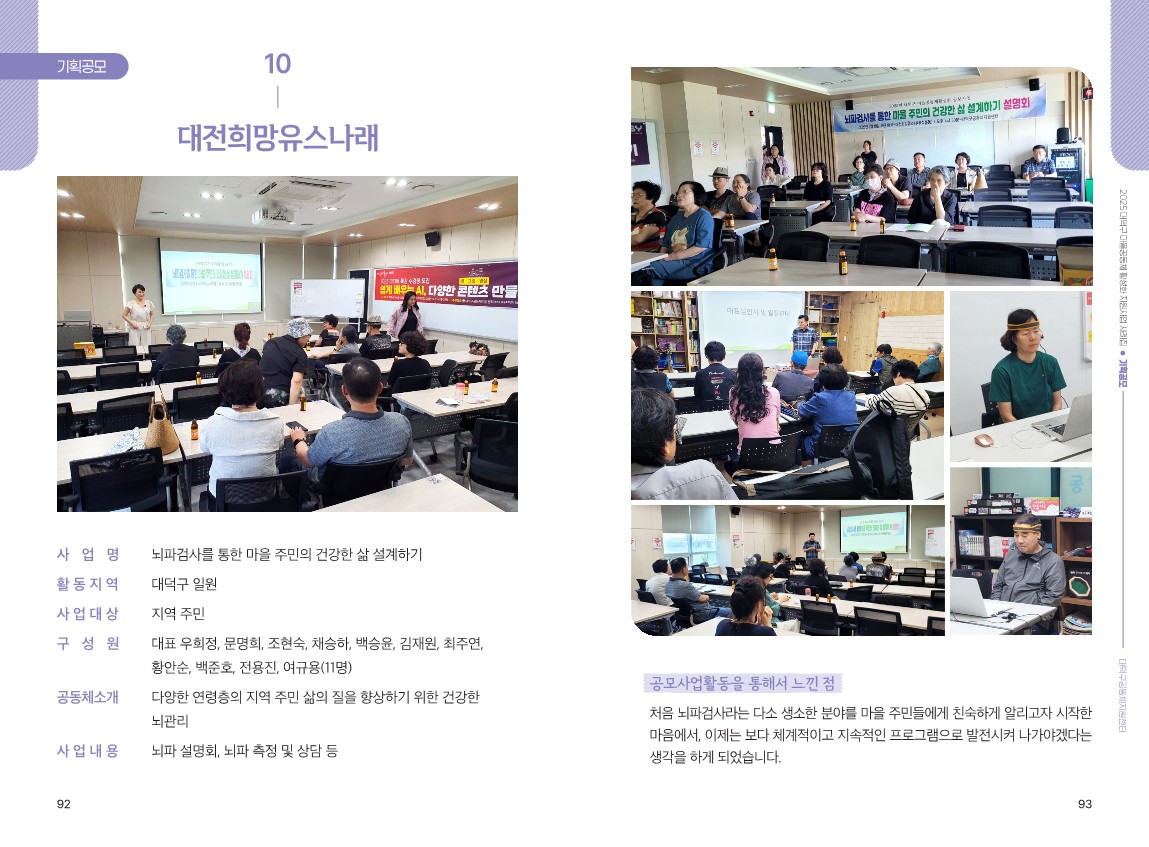 사 업 명: 뇌파검사를 통한 마을 주민의 건강함 삶 설계하기