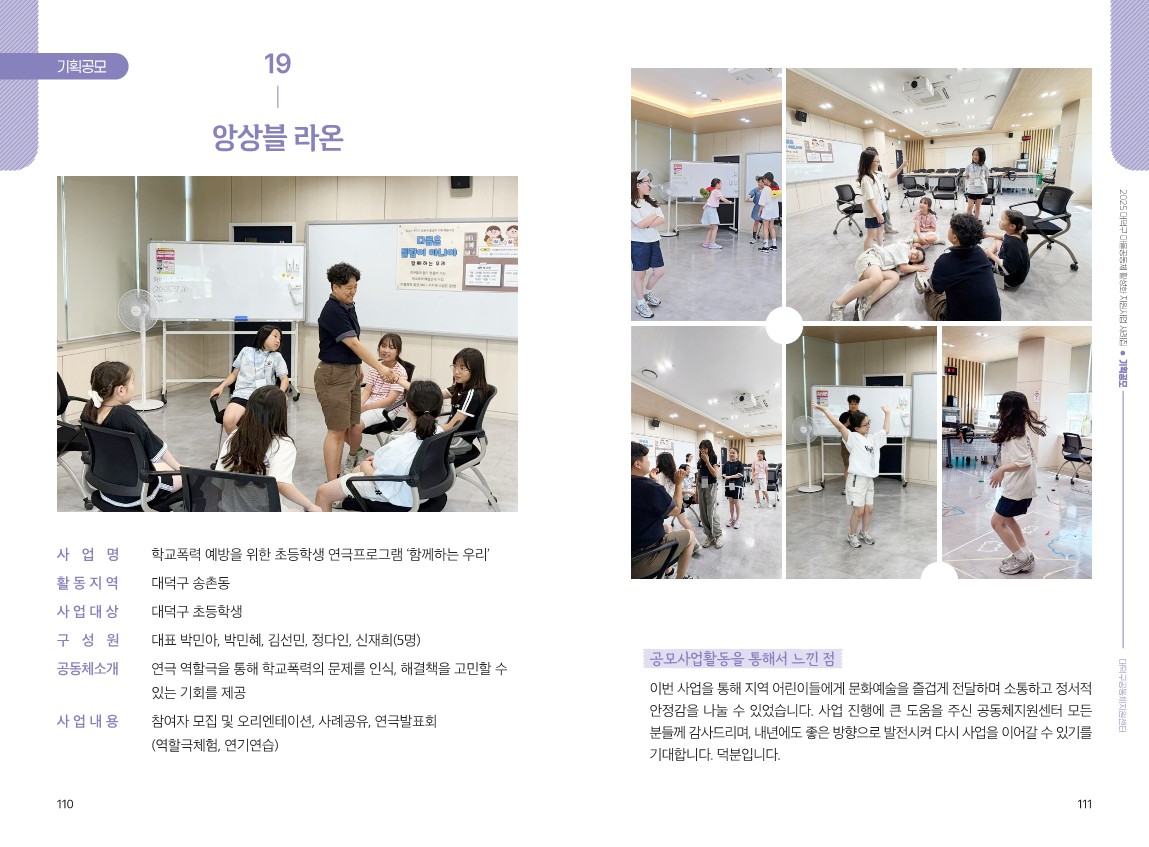 사 업 명: 학교폭력 예방을 위한 초등학생 연극프로그램 "함께하는 우리"