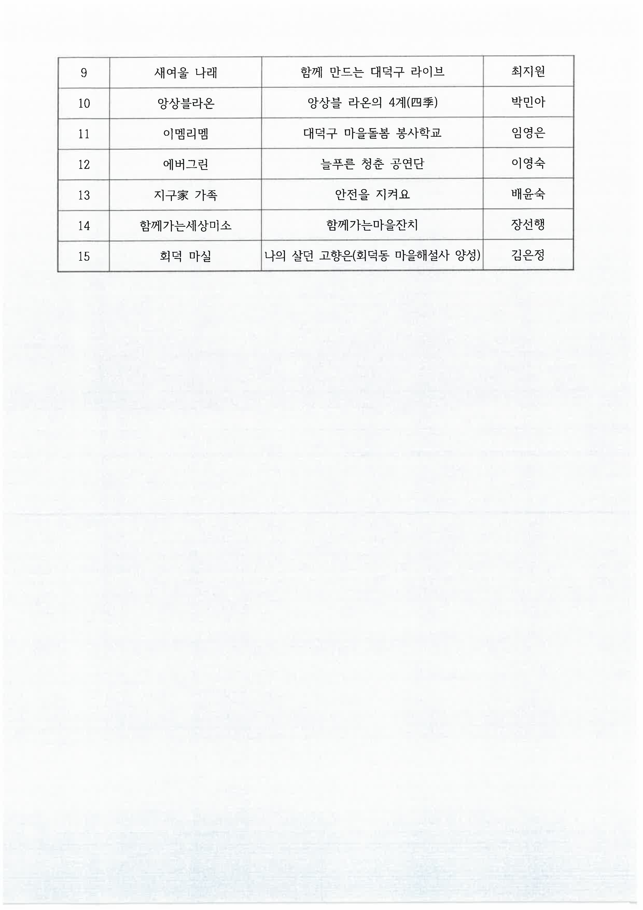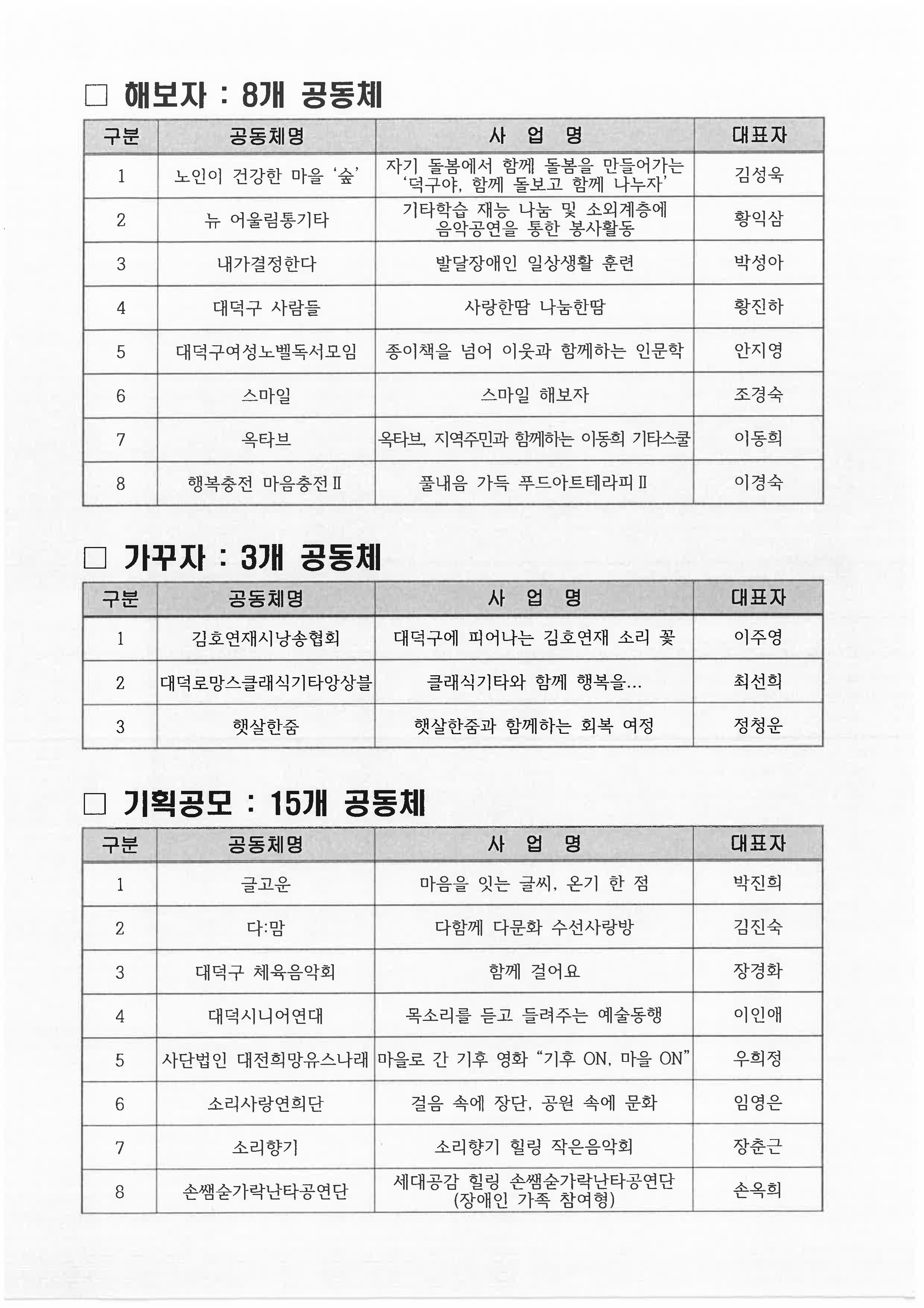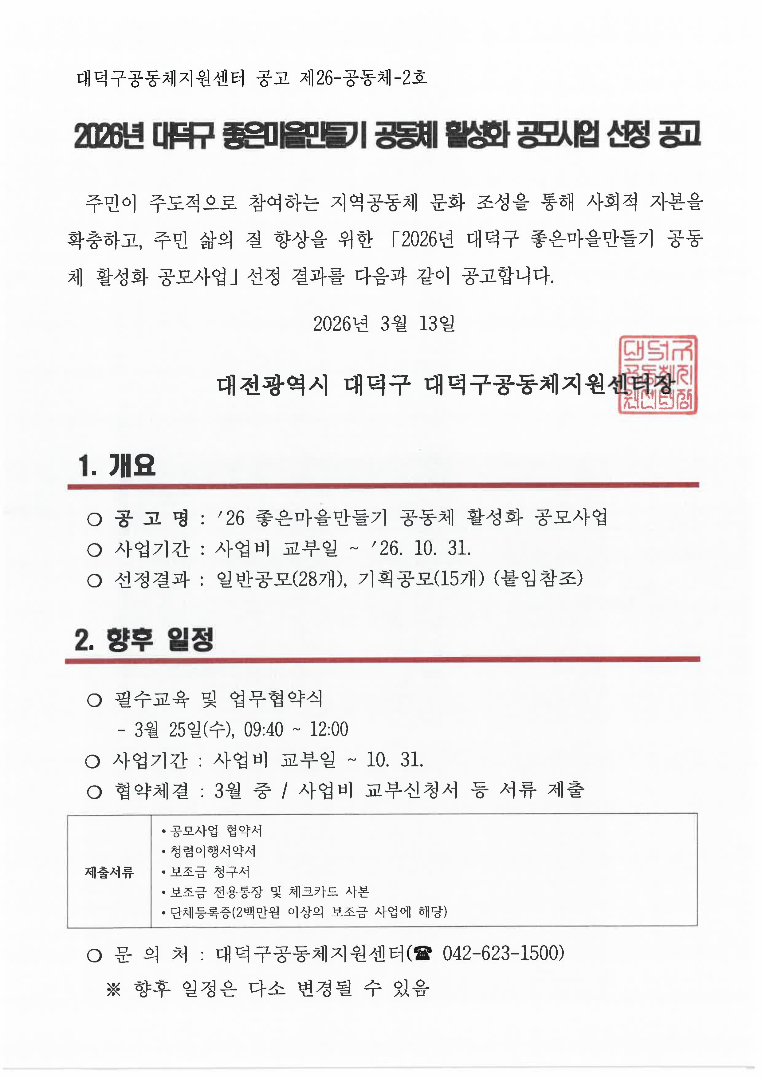 2026년 대덕구 좋은마을만들기 공동체 활성화 공모사업 선정 공고