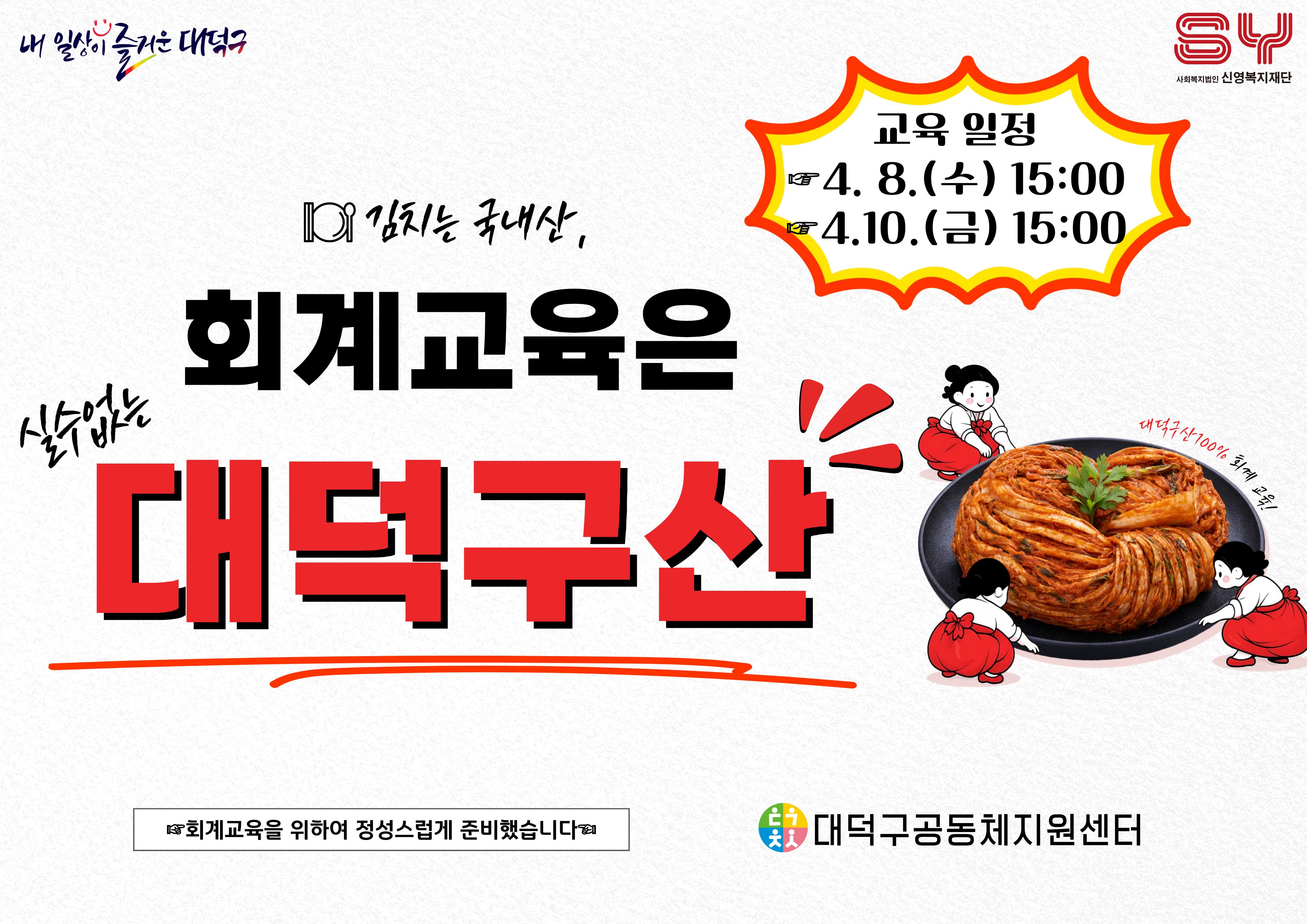 [대덕구공동체지원센터] 2026년 대덕구 좋은마을만들기 공동체 활성화 공모사업 회계교육 일정 안내